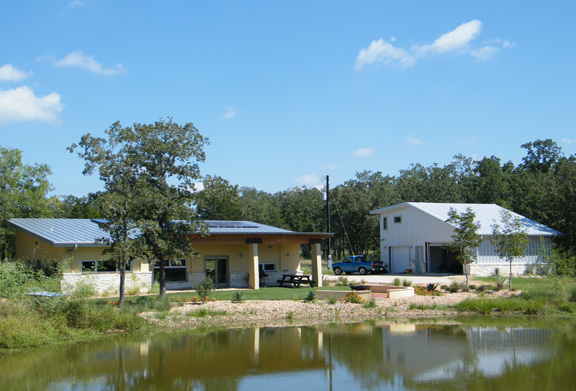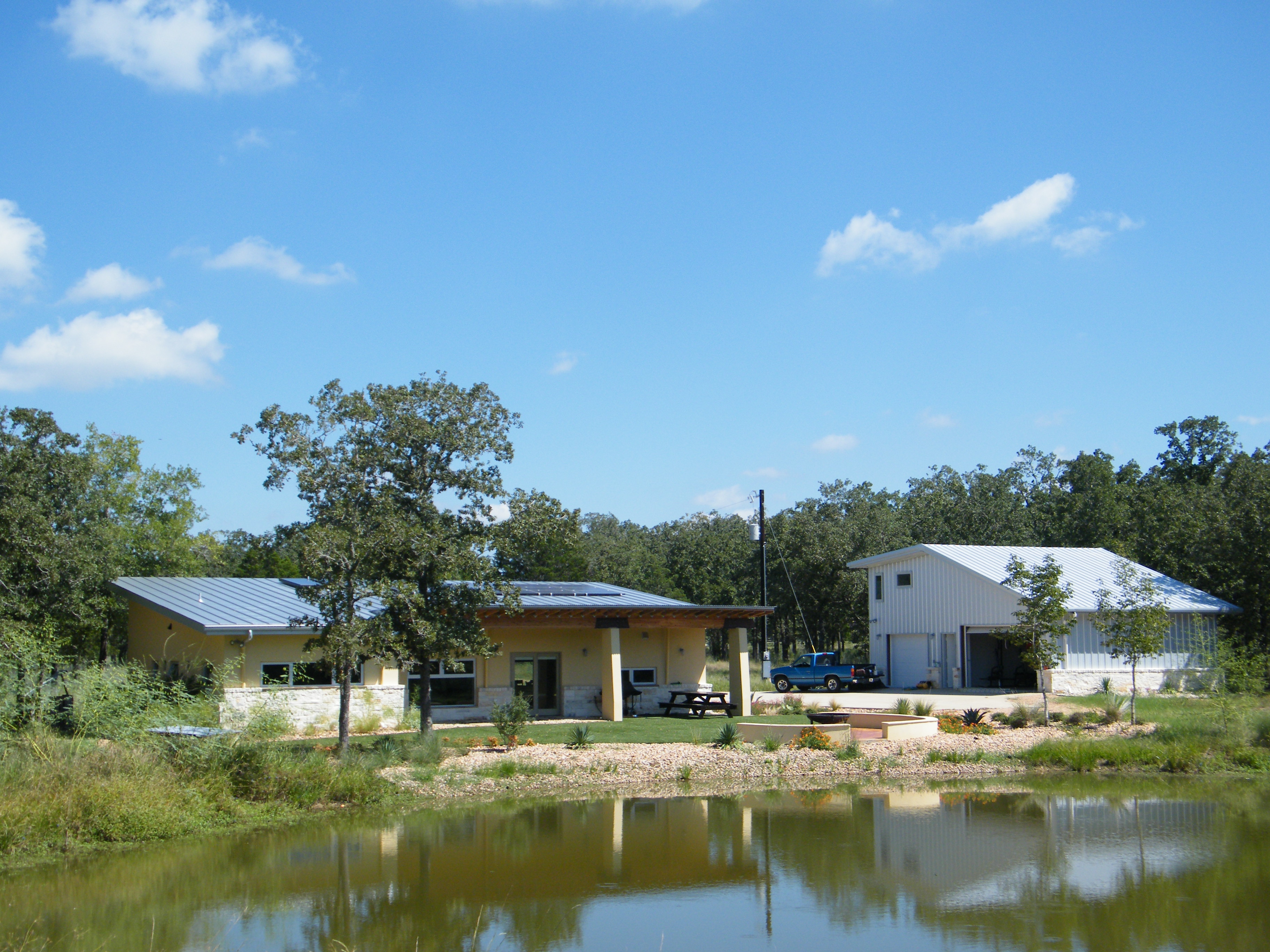 The main house made out of insulated concrete forms (ICFs). The roof has structural insulated panels (SIPs). The house features rainwater collection system, solar water heater and solar panels. Rainwater is filtered and used fully for all water needs. Solar panels generate enough electricity for the owner to sell some of it back to the grid.