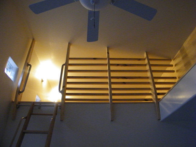 The garage has a separate sleeping loft. The garage roof is also used for rainwater harvesting. The water is collected in a 20,000 gallon storage tank. The water is first filtered outside to get rid of larger debris. Inside the house the water is again filtered and treated for drinking and household use.