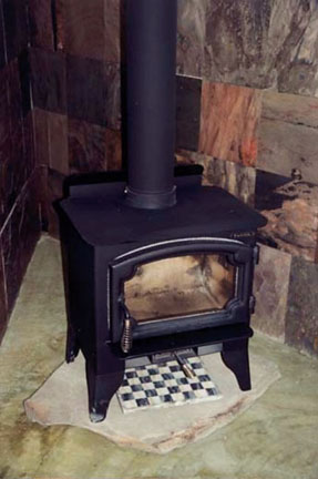 The whole downstairs great room area is able to be heated with the wood burning stove. The house was oriented to the sun to take advantage of prevailing winds to cool the house and to keep the sun away from the windows during hot summer months. This greatly increases the energy efficiency of the house. No trees were cut down during construction.