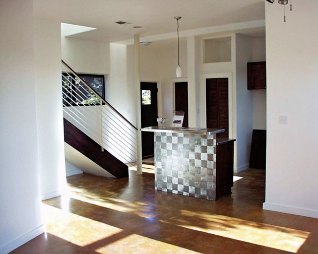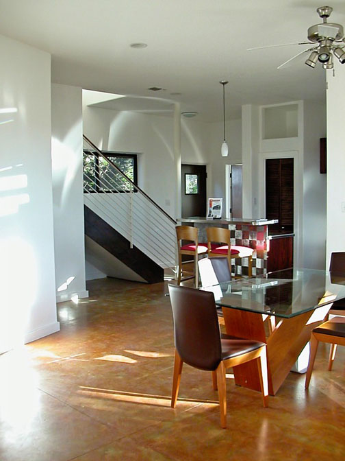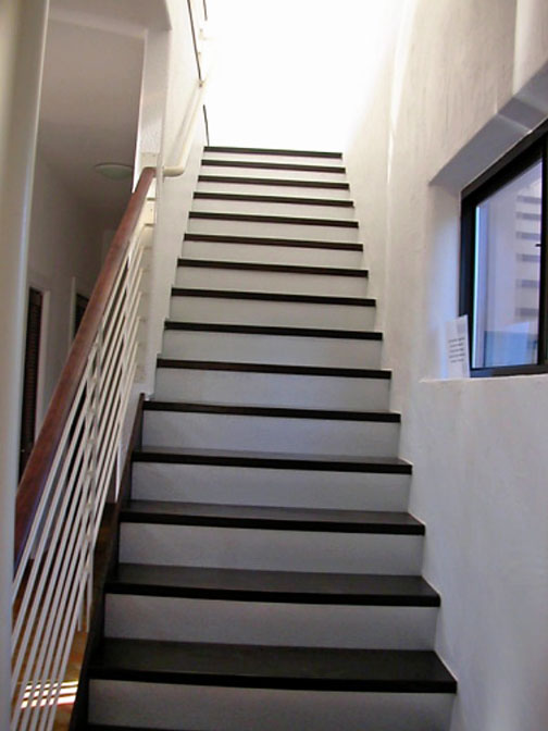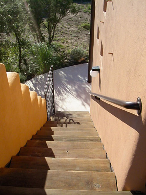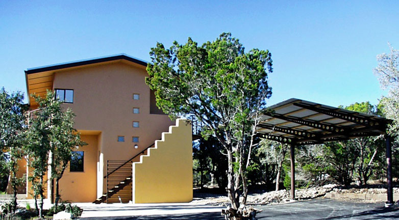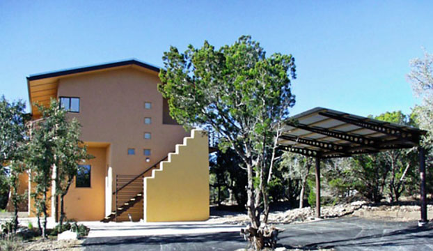 Recycled materials were used in railings, overhang brackets, beams and the carport. Landscaping has local native plants that require less water and provide habitat for local fauna.