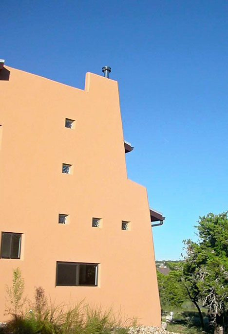 Passive solar aspects of the future house on the lot were studied before locating the footprint. The orientation of the house takes into consideration the prevailing breezes and the path of the sun keeping the house cool and warm naturally thus lowering the HVAC usage and saving energy. Due to the high insulation rating of ICF in the walls and SIPs in the roof allows the HVAC equipment to be smaller and further lower the energy consumption.