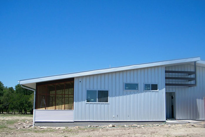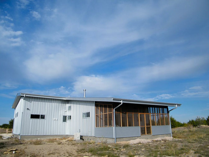 Phase one of a sustainable construction project in Gatesville, Texas. The owners wanted to build a garage with a loft and a studio apartment in order to live on site during the further phases of the construction.