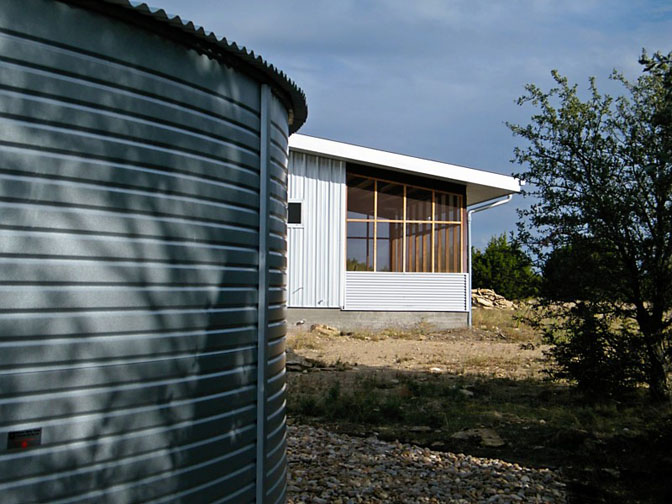 The garage/studio has rainwater harvesting system. All mechanical systems were designed the future phases of construction in mind.